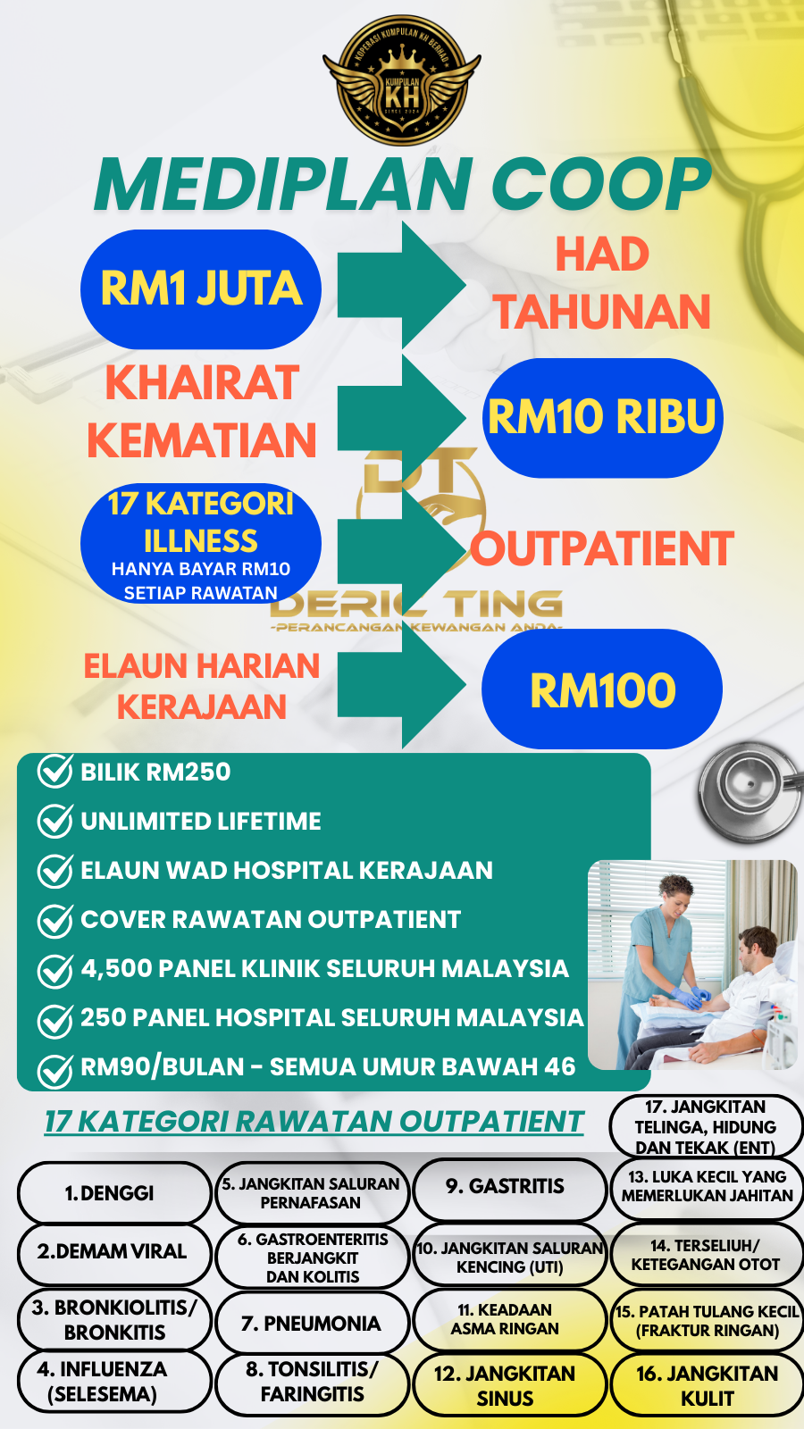 Jangan biar bil hospital kacau kewangan keluarga! Koperasi Kumpulan KH Berhad bawakan pelan perubatan TERMURAH & TERLENGKAP β selamat, cashless, dan paling penting, tak membebankan poket. πͺπ